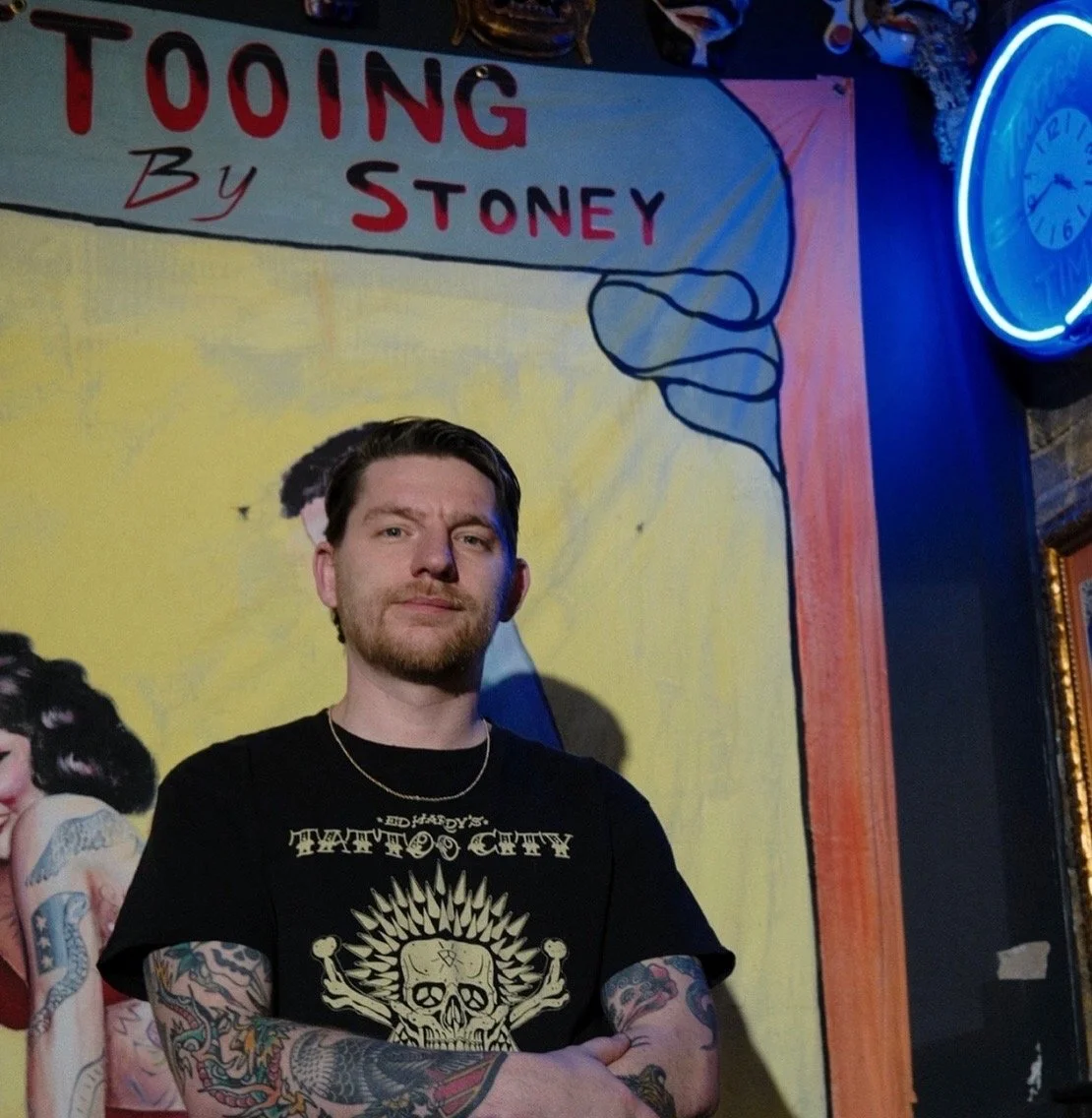 Sean is a tattoo artist and shop owner with over 23 years of experience rooted in the traditions of American and Japanese tattooing. Known throughout the St. Louis tattoo community for his dedication to craft, Sean approaches tattooing as both an art form and a lifelong discipline. Guided by the history, symbolism, and storytelling that define classic tattoo culture. Sean draws from an extensive personal library of rare tattoo books, vintage flash, acetate stencils, and hand-painted designs collected over two decades.